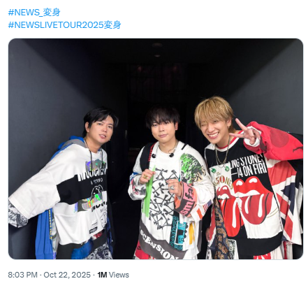 | 2023年 | ・『TOKYO METROPOLITAN ROCK FESTIVAL 2023』で初めて野外フェスに出演 ・3人体制で初の東京ドームライブ『NEWS 20th Anniversary LIVE 2023 in TOKYO DOME BEST HIT PARADE!!!〜 シングル全部やっちゃいます 〜』を開催 |