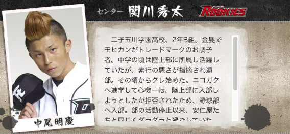金髪モヒカンがトレードマークの関川 秀太(せきかわ しゅうた)は、野球部のムードメーカー。
